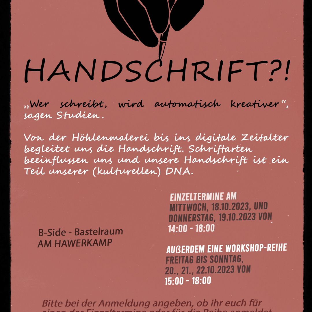 In dieser Workshop-Reihe/ diesem Workshop werden wir schreiben üben, Schriftarten und Schreibgeräte kennen lernen, die vielen verschiedenen Bereiche, die das Thema Handschrift mit sich bringt, anleuchten.