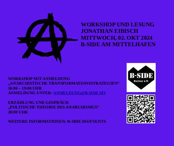 Die Veranstaltung ist ein Erfahrungsbericht über die intensive Beschäftigung mit anarchistischer Theorie aus der eine Doktorarbeit und ein Buch hervorgegangen sind.
