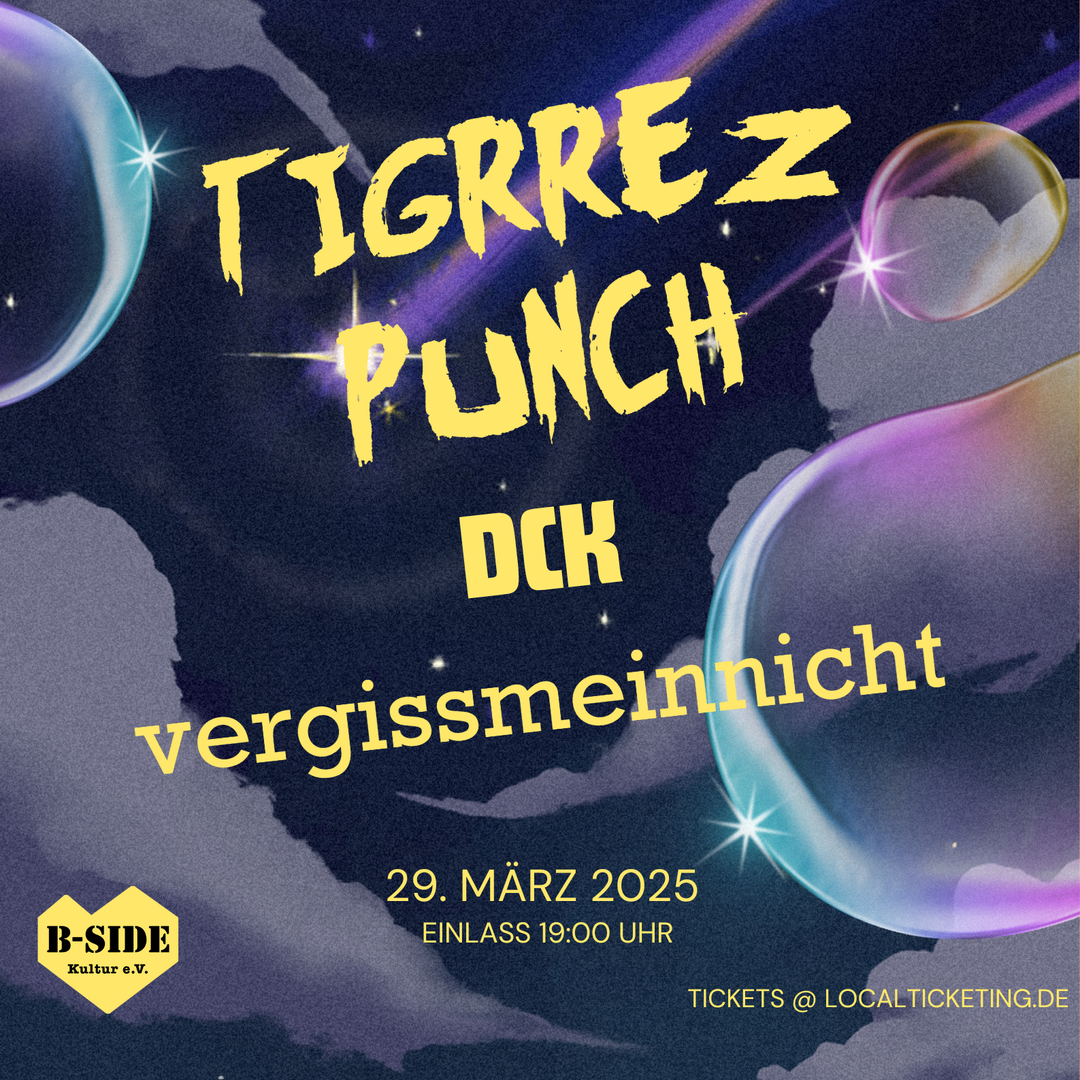 Wir laden ein zu einem mausig queeren Hip-Hop Konzert im Herzen des Hafens: vergissmeinnicht wird den Abend mit einer Mischung aus Rap und Gesang eröffnen, DCK – zu zweit aber style für drei – werden, mit zehn Fingern und einem Mikrofon die whackness der Gesellschaft aufzeigen und mit queerfeministischen lines und basslastigen beats wird Tigrrez Punch den Abend abrunden und mal aggressiv, dann wieder soft gegen das Patriarchat polternd in eine gemütliche Party Stimmung entlassen.