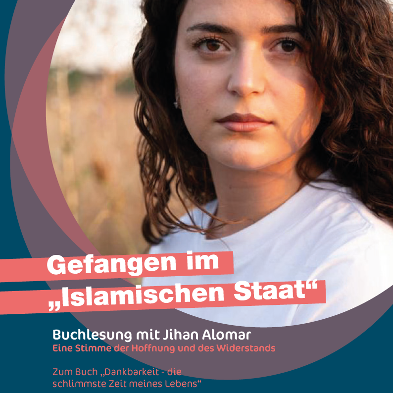 Jihan Alomar ist Jesidin und eine Überlebende des Völkermordes. Im Alter von zehn Jahren wird ihre Heimatstadt Shingal von der Terrororganisation Islamischer Staat (IS) überfallen. Sie verbringt 10 Monate in IS-Gefangenschaft, bevor sie von einem Verwandten freigekauft wird und über ein Bundesaufnahmeprogramm nach Baden-Württemberg kommt. In ihrem Buch „Dankbarkeit- die schlimmste Zeit meines Lebens“ erzählt sie ihre Lebensgeschichte, die von Angst, Gewalt und Verlust geprägt ist– aber auch von unerschütterlicher Hoffnung und Entschlossenheit, eine Zukunft für sich und ihre Gemeinschaft aufzubauen.