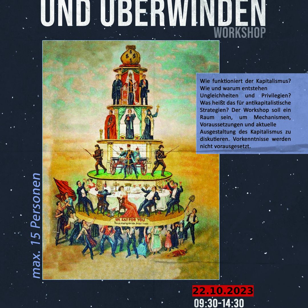 Wie funktioniert der Kapitalismus? Wie und warum entstehen Ungleichheiten und Privilegien? Was heißt das für antikapitalistische Strategien? Der Workshop soll ein Raum sein, um Mechanismen, Voraussetzungen und aktuelle Ausgestaltung des Kapitalismus zu diskutieren. Vorkenntnisse werden nicht vorausgesetzt.